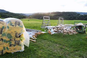 Videre bør en være forberedt på at det er MYE jobb med å totalrenovere et gammelt hus. Og ja, en må ta høyde for at ting tar tid. Man kan selvsagt sette bort jobben til andre, men da blir også prisen deretter. Selv har vi en god del hjelp utenfra, samtidig gjør vi også gjør mye selv (riving, rydding, en del snekkering osv.) Bare å skaffe alt av varer er litt av en jobb. Og det er dukker alltid opp noe som ikke har vært på lista tidligere. Så da er det bare å sette seg inn i bilen og kjøre til nærmeste byggvareforretning. Vi har heldigvis god hjelp av min far og andre familiemedlemmer som stiller velvillig opp. Og ikke minst er det kjekt å ha en traktor som medhjelper. Med den frakter og flytter vi materialer, løfter vinduer og dører og i tillegg er skuffa fin å bruke som stillas når bordkledning skal rives.