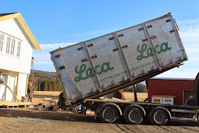 For en ukes tid siden kom det en diger lastebil til gården. Denne hadde med seg lecakuler som skulle sprøytes utover jordgulvet i første etasje. Dette tok en drøy time, og over dette ble det lagt isoporplater og armering.