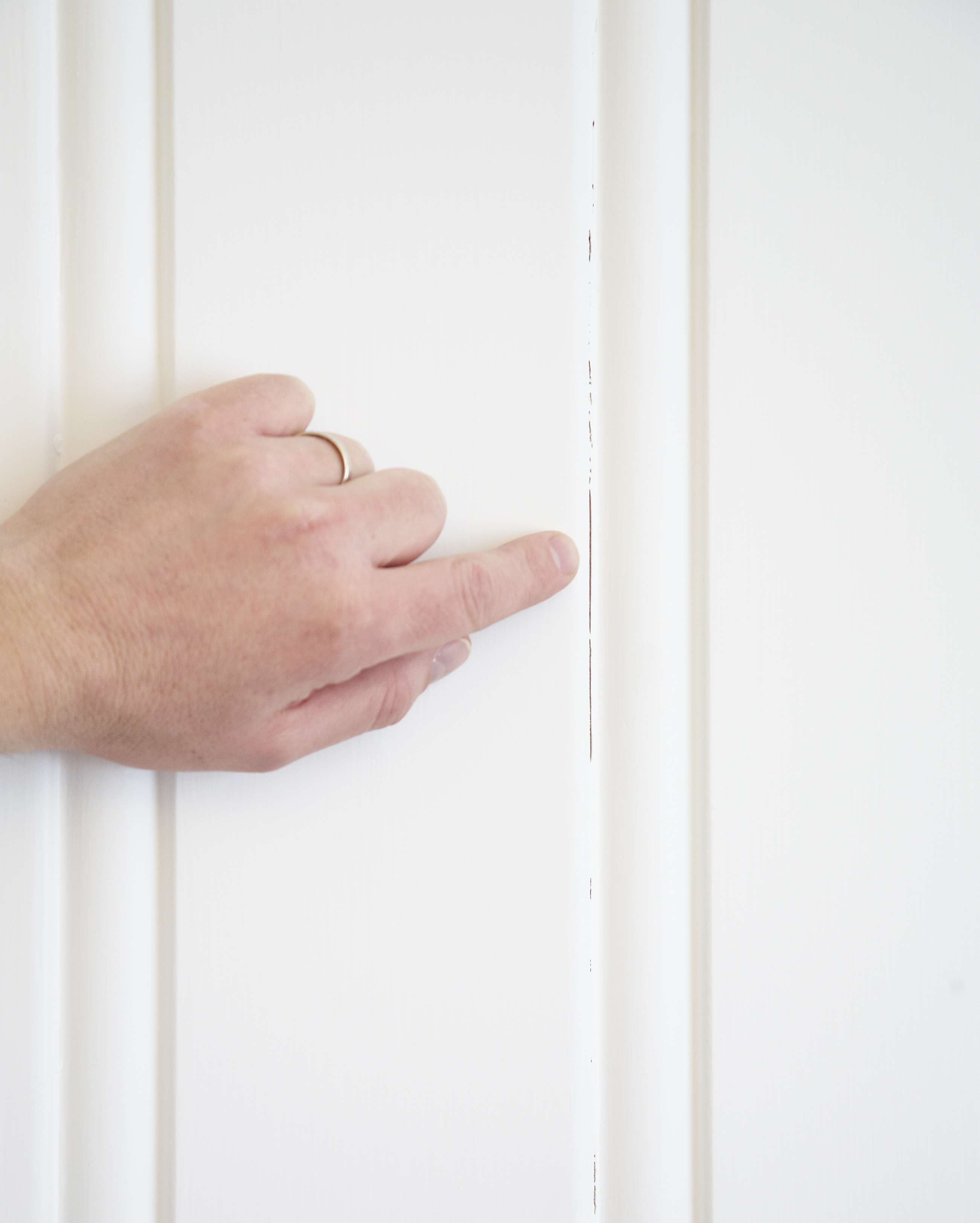 Det er alltid lurt å la panelet stå en stund og akklimatisere seg til rommets temperatur før det monteres. Det aller beste er å la panelet ligge noen uker, til det har nådd under 12 prosent luftfuktighet, for så å male et tynt strøk før oppsetting. Dette vil gjøre til at du i større grad unngår krympestriper og sprekker. Dersom panelet skal behandles etter montering, er det lurt å la panelet tørke så lenge som mulig før du begynner å male. Det beste tidspunktet for å male panel er i månedene februar/mars. På denne delen av året er luften på sitt tørreste, i tillegg til at fyring bidrar til ytterligere lav luftfuktighet. Det er med andre ord optimalt å male når det er kaldt ute og varmt inne.